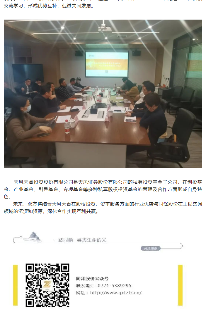 合作交流 | 天风天睿投资股份有限公司到访同泽股份座谈交流
