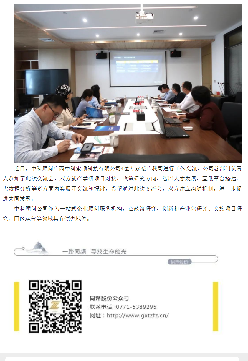 创新发展研究 | 中科顾问公司到访同泽股份工作交流