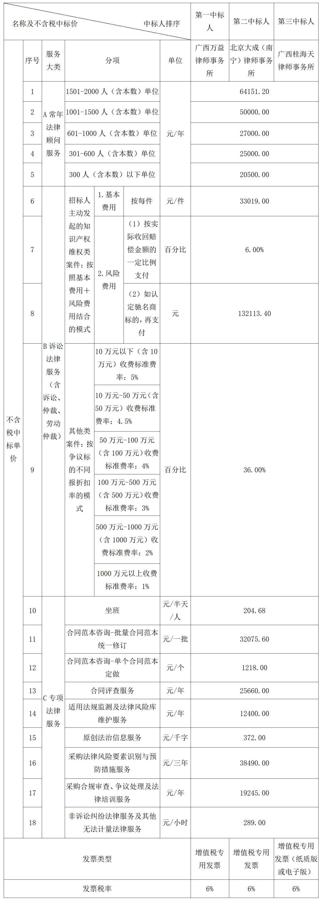 广西同泽工程项目管理股份有限公司受广西中烟工业有限责任公司的委托,于2025年9月22日就2026-2028年法律服务供应商库采购(项目编号:GXTZ-ZB-2025第(730)号)采用公开招标方式进行招标。现就本次招标的结果公告如下: